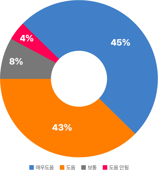 (매우 도움 45.0%, 도움 43.0%)로 나타났습니다.
