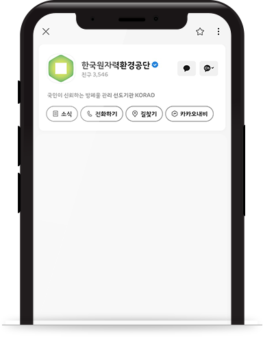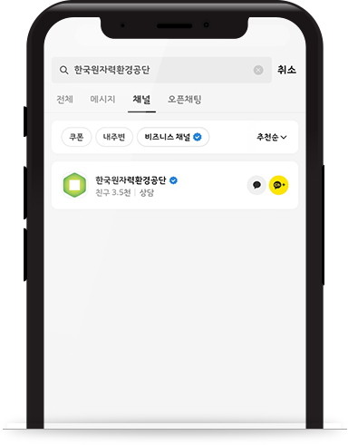 카카오톡 상단 검색창에서 한국원자력환경공단을 검색 해주세요.