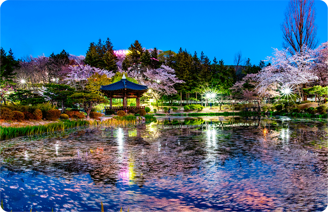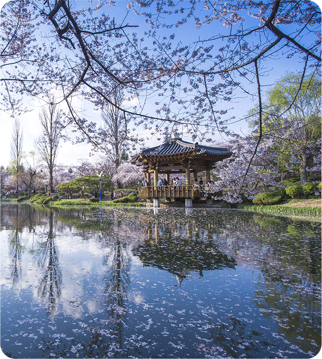 경주의 벚꽃 명소 중에서도 보문정(普門亭)은 마치 한 폭의 동양화를 연상시키는 곳이다. CNN이 ‘한국의 비경’으로 선정할 만큼 아름다운 이곳은, 특히 봄이면 벚꽃이 만개해 절정을 이룬다. 팔각 정자와 그 주변을 감싸는 벚나무들, 그리고 그 아래 잔잔한 연못—보문정의 풍경은 마치 시간이 멈춘 듯 고요하고도 우아하다. 벚꽃잎이 바람을 따라 흩날리며 연못 위로 떨어지면, 물 위에 분홍빛 꽃잎이 가득 깔려 마치 또 하나의 벚꽃 세상이 펼쳐지는 듯한 신비로운 장면을 연출한다. 고즈넉한 정취 속에서 천천히 걸으며 벚꽃이 물 위로 흩날리는 순간을 바라보면, 봄날의 낭만이 더욱 깊어진다. 사계절 내내 아름다움을 간직한 보문정에서, 경주의 가장 특별한 순간을 만나보자.
