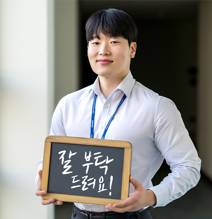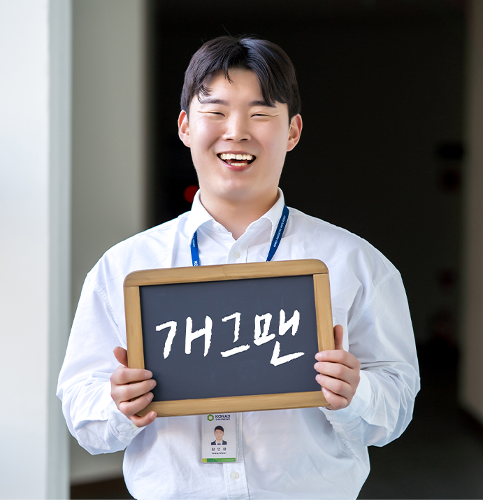 KORAD의 비타민 C가 되겠습니다! 밝고 활기찬 모습으로 긍정적인 에너지를 드리고 싶어요. 입사하고 처음 받은 월급으로 부모님께 ‘flex’를 하고 싶었어요. 그래서 용돈도 드리고 음식도 대접했습니다. 지금 사는 숙소로 집 꾸미기를 하고 싶었는데, 현재 열심히 저만의 공간을 만들고 있습니다.