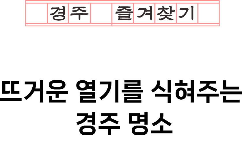 경주의 여름은 고요하지 않다. 햇살이 감포항의 일렁이는 수면 위로 쏟아지고 봉길해수욕장엔 피서객들의 웃음소리가 가득하다. 시원한 바닷바람은 음악의 선율을 따라 월정교 아래 머물고 빛으로 물든 봉황대 안에서는 다채로운 음악이 여름밤을 수놓는다. 햇살이 부서지는 여름. 경주에서 맞이하길 바라는 마음으로 이 계절을 소개한다.
