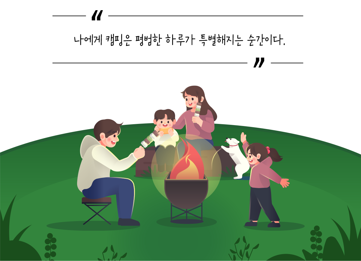 “캠핑으로 즐거운 추억을 만들어 가세요! 직화구이와 불멍, 그리고 좋은 사람들이 머무는 이번 캠핑에 당신을 초대합니다!”