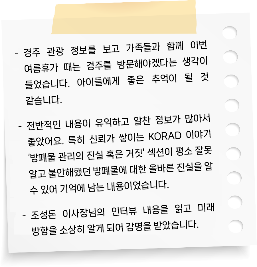<청정누리> 여름호에서 가장 흥미롭고 재밌었던 주제는 한국원자력환경공단의 소식이네요!